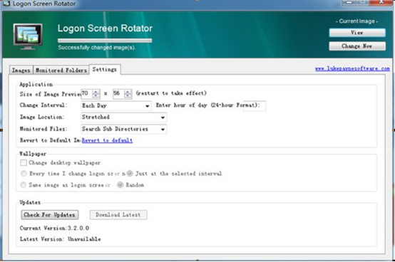 在“Change Interval”中设置更换登录界面的时间周期,可以指定为每天更换一次,或者每次登录或每一次锁定电脑时更换。