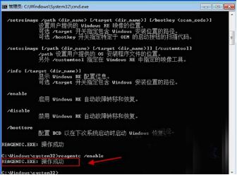 3、输入“reagentc /enable”命令后按回车,将windows RE重新启动,命令执行成功的话就会提示你“操作成功”。