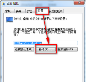 2、在打开的桌面属性设置窗口中,切换到“位置”标签页,选择“移动”按钮。