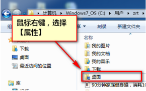 1、打开ghost win7系统C盘,找到桌面文件,在桌面文件文件夹上右键,选择“属性”。