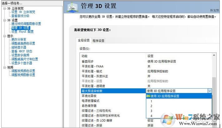 这项功能能够明显提升游戏性能,尤其当硬件相对于游戏偏低时更加明显。除此之外,“3D设置→管理3D设置→全局设置”里的“最大预渲染帧数”也有类似的效果,根据实际情况调整即可。