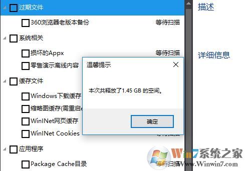 3、好了,检测到1G多的Winsxs组件可以清理,点击右下角清理按钮,开始清理;