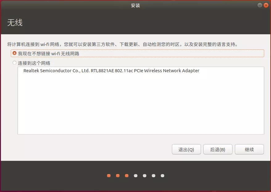 6、在网络选择的时候,点击【我现在不想链接wi-fi无线网络】,然后点击【继续】。