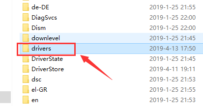 4、先进入C:WindowsSystem32找到drivers文件夹。
