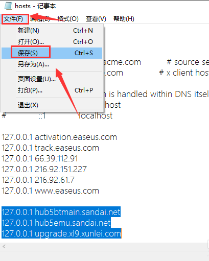 9、输入完成,点击hosts文件--保存后退出,重启迅雷即可,如下图所示