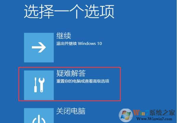 接下来会到选择一个选项界面,我们再点击“疑难解答”;