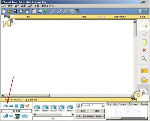 1:首先打开packet tracer 软件,在如下图单击路由器图标。