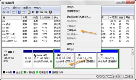 win7系统自带磁盘管理工具调整硬盘分区大小的操作方法