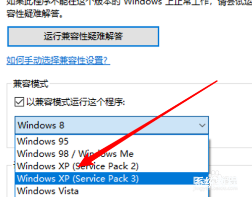 6:在下拉选项里选择xp系统(sp2或sp3的版本都可以),这是旧版系统里稳定性较好的,对游戏兼容发最好的系统了。