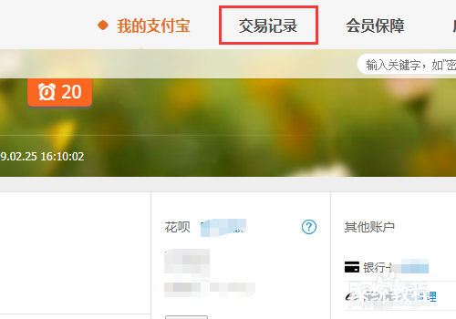 4:进入支付宝界面后,点击导航栏上方的“交易记录”的选项。