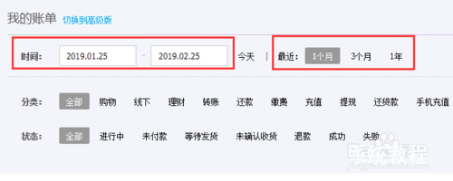 6:还可以自定义选择查询时间,在“我的账单”下方时间,点击查看最近一个月、三个月和一年的收支明细。