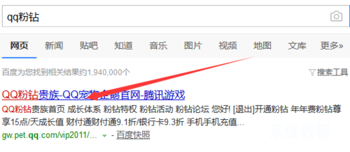 2:然后点击搜索出来的首条记录(QQ粉钻贵族--QQ宠物企鹅官网--腾讯游戏)。