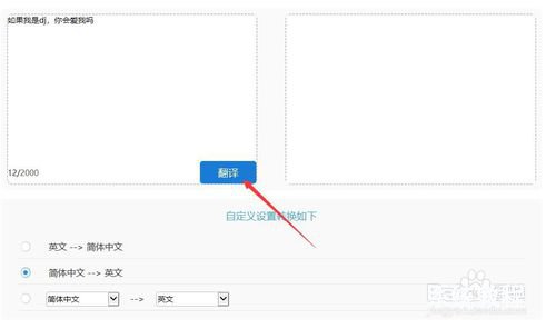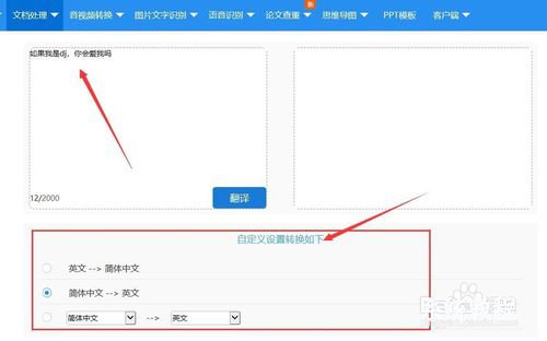 3:进入以后,左边框内手动输入或粘贴需要翻译的内容,在下方设置下转换的语言参数。
