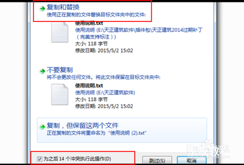 6:勾选“为之后14个冲突执行此操作”,选择“复制和替换”
