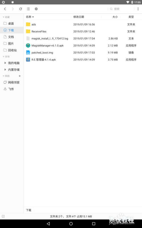 从下载的apk安装包,使用第三方手机管理软件进行上传安装,打开软件按提示进行安装Magisk.zip包。
