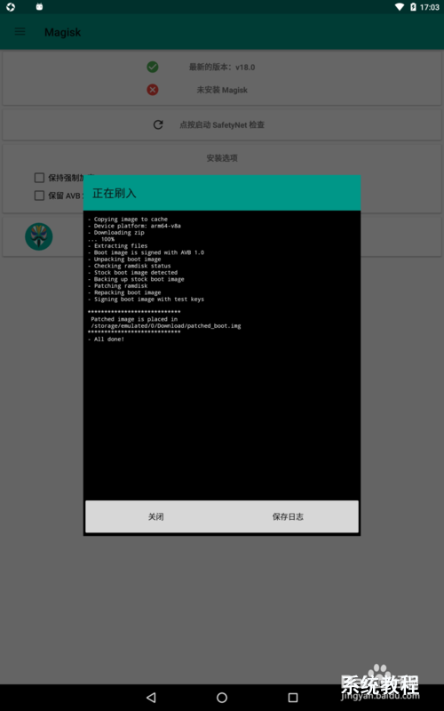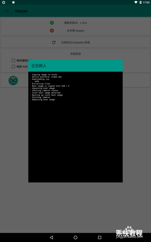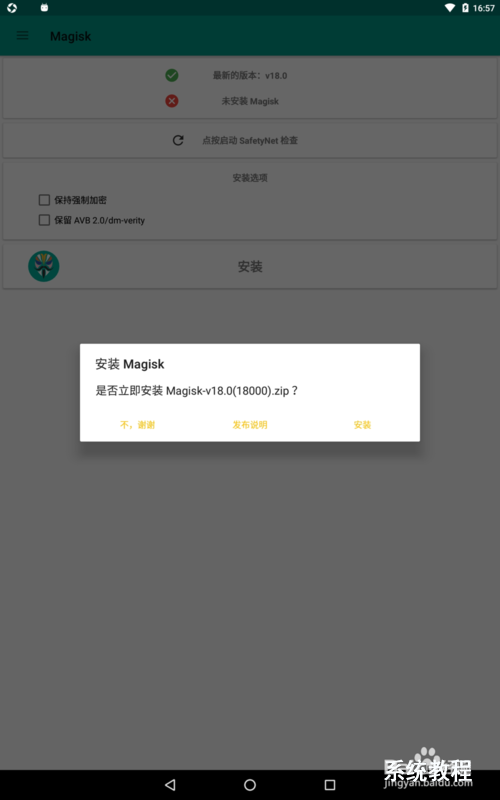 注:第一次运行MagiskManager会有些慢,会看不到“安装”按钮,请耐心等待几分钟即可。