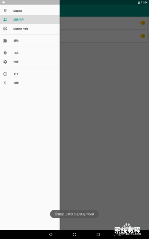 开机后在MagiskManager软件中的设置模块”超级用户“可查看已获取权限的应用列表。