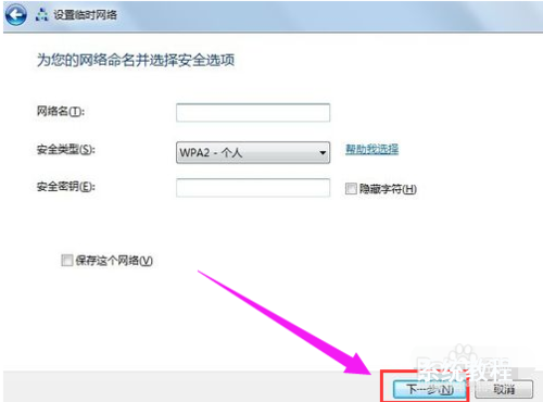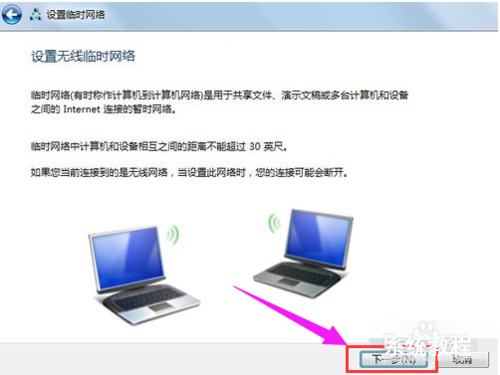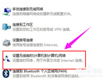 5:在跳出的窗口里面选择“设置无线临时(计算机到计算机)网络”