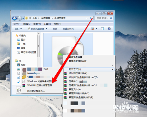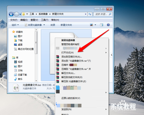 3:选中光盘镜像文件后,使用鼠标右键点击弹出菜单选择打开方式。