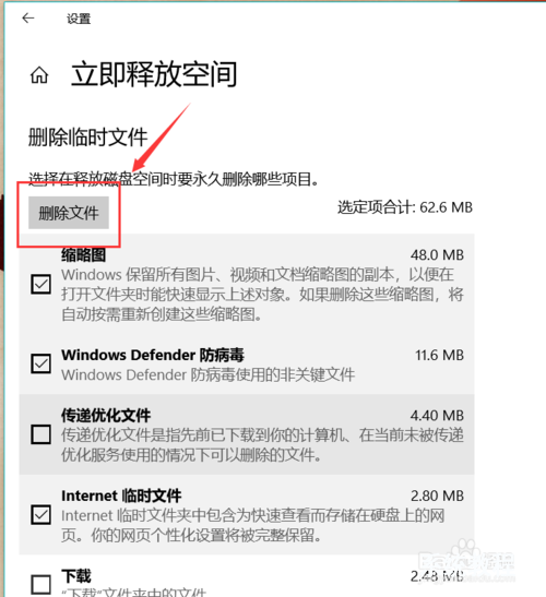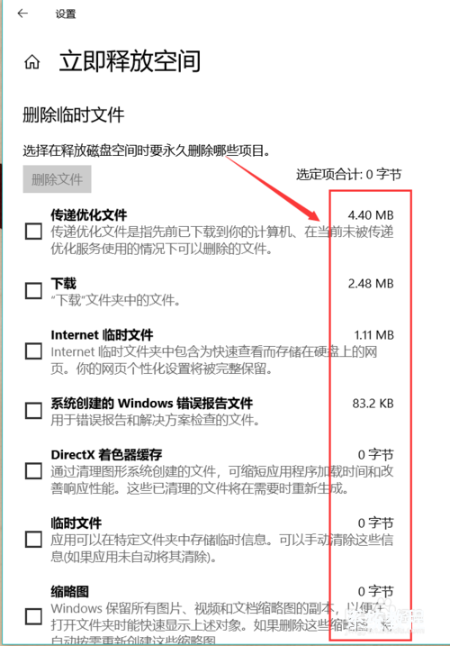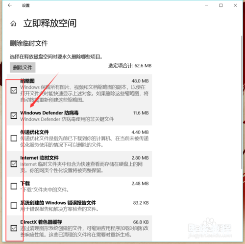 5:电脑就会自动扫描电脑中的临时文件,点选需要删除的项目。