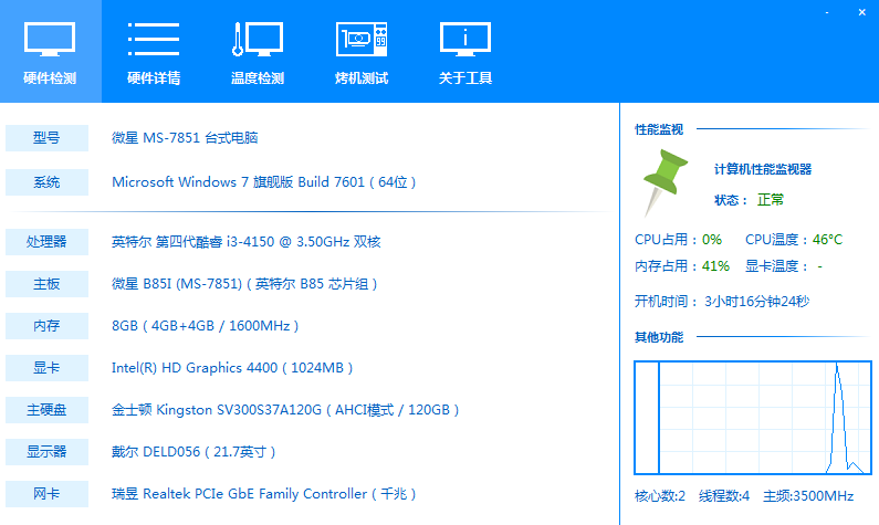 4.详实专业,占用极少–检测的信息比较详实且靠谱,运行使用时系统资源占用极少;