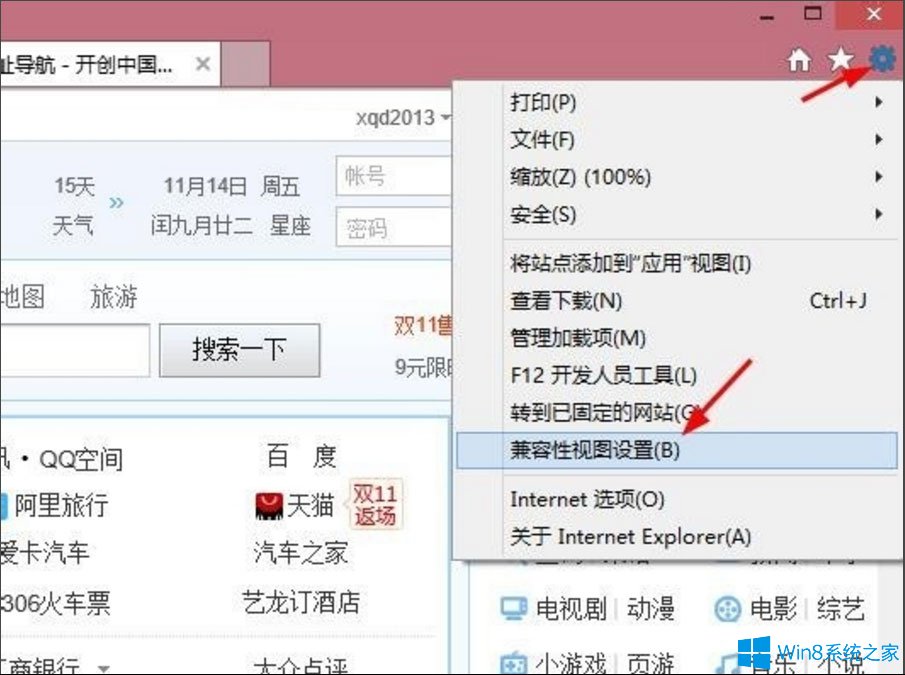 6、最后,在打开IE,点【工具】---选择【兼容性视图设置】;
