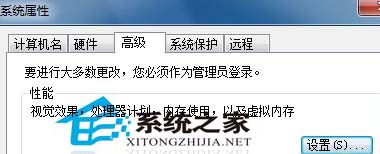在弹出的对话框中切换到“高级”选项,单击“性能”区域内的“设置”按钮(如图2):