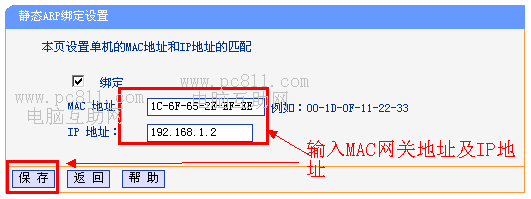 电脑互助网注:也就是MAC是对的,而IP地址也必须设置的和静态ARP绑定设置中相同的IP才可以上网,否则就上不了网。