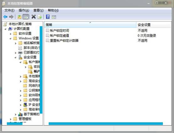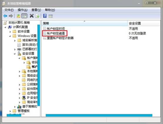 3、在“组策略编辑器”依次打开“计算机配置”-“windows设置”-“安全设置”-“账户策略”-“账户锁定策略”。