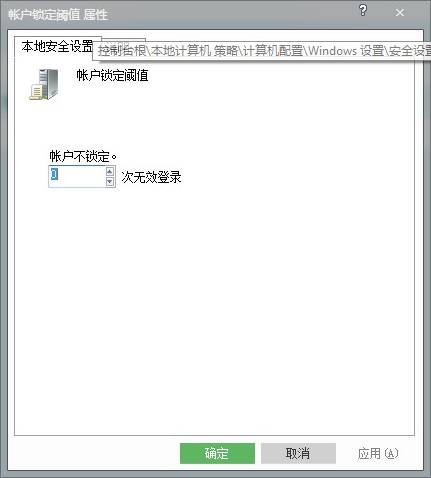 5、在“账户锁定阈值属性”对话框中选择错误次数锁定,如图所示: