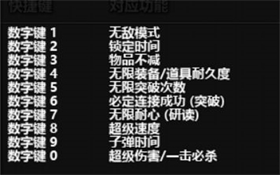 再向修改器的下方阅读,我们就会发现我们也可以通过ctrl+数字键来实现修改的功能,以及我们还可以通过F1-F12来实现修改。
