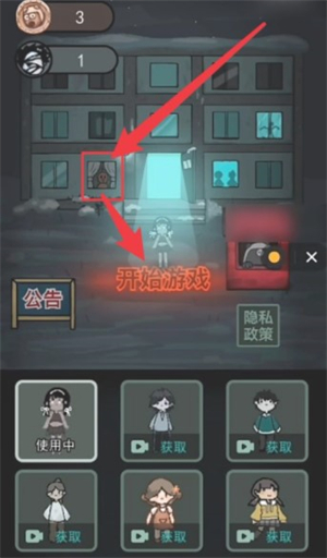 打开游戏,首先在主界面点亮宿舍左侧【窗台】并点击【开始游戏】。
