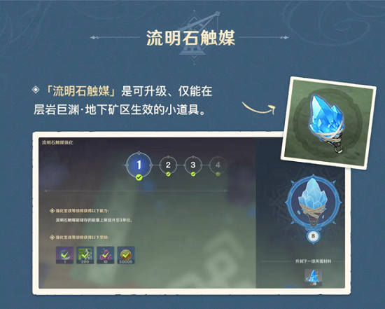 根据以往神瞳类收集物的经验,我们推断流明石触媒最高等级很可能为10级,相关奖励参考忍冬之树。