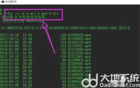 默认是在C盘,可以通过下图的命令切换到C盘根目录或者D盘,要查哪个磁盘分区上的视频,就切换到哪个磁盘。在CMD中输入盘符+冒号,按回车键即可切换。
