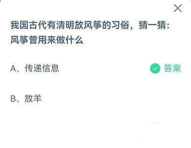 题目是:我国古代有清明放风筝的习俗,猜一猜:风筝曾用来做什么?
