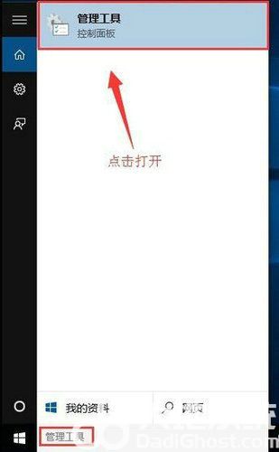 1、登录到Win10专业版系统桌面,在开始菜单旁边的输入栏里面输入“管理工具”,然后点击打开管理工具。