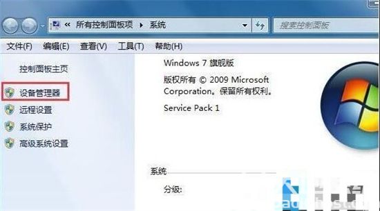 1、鼠标右键点击计算机图标,在弹出的菜单中点击属性,在弹出的窗口中,点击左侧设备管理器,如图所示: