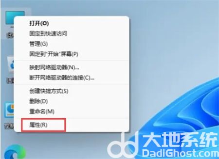 2、在win11桌面上鼠标右键此电脑图标,选择属性打开。