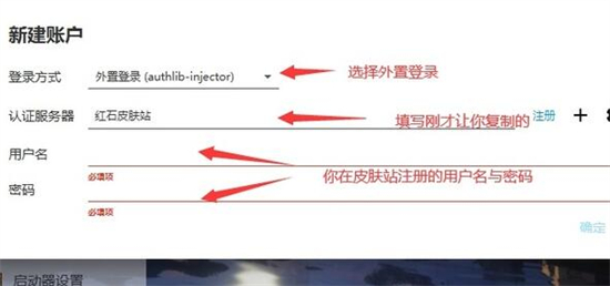 6、然后选择“外置登录”,在认证服务器中粘贴刚刚复制的链接。
