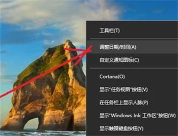 2.在下列菜单中选择调整日期/时间选项命令。