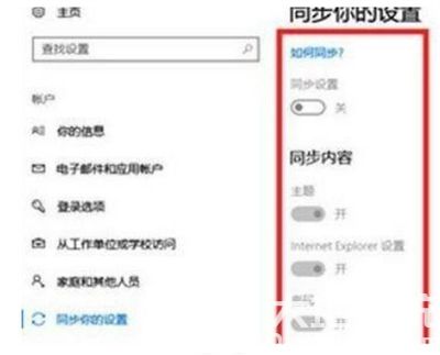 5、在电脑的设置中选择账户,将所有可以同步的设置都全部关闭。