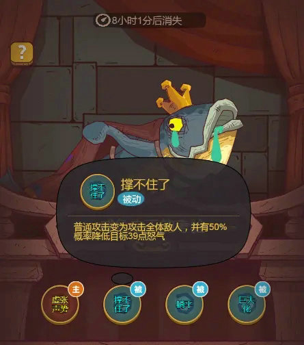 这套其实和第一套阵容大同小异,只不过把袁绍换成了张飞,原因大家可以看上图BOSS的技能,这个BOSS你不控制着打,别说上袁绍给英雄加怒气了,不把怒气减完都谢天谢地了。