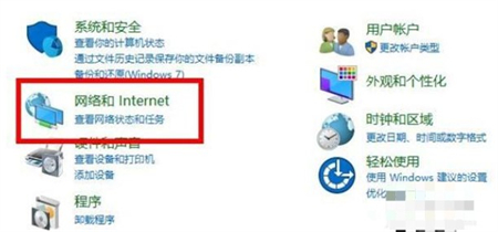 如图所示:点击控制面板中的“网络和Internet”。