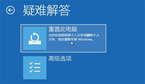 4.进入到疑难解答后,再选择“重置此电脑”,