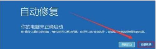 2.重复步骤3次左右启动后出现“自动修复”界面,我们点击高级选项进入;
