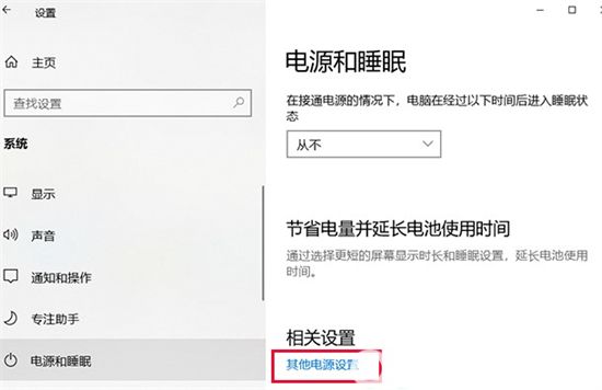 我们再点击“电源和睡眠”,再点击右侧窗口上的相关设置下面的“其他电源设置”,如下图所示。