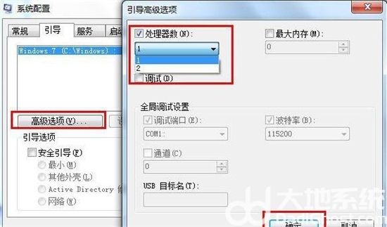 增加运行处理器数量可以让win7加速,使其更加流程。请按以下方法操作,在步骤1的基础上,点击高级选项按钮,接着会弹出一个新窗口,我们勾选“处理器数”,在下拉菜单中按照自己的电脑配置进行选择,现在双核比较常见,当然也有4核,8核,勾选您需要的处理器数量点击确定即可。该功能需要重启电脑才生效!