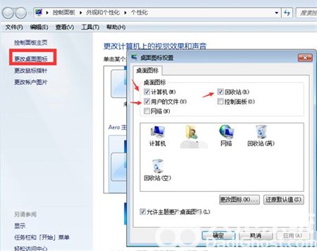 4、如果电脑是新装的电脑,桌面除了系统图表之外就没有别的图标,这个时候要检查下,桌面设置中是否有选中系统图标显示在桌面。
