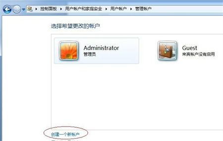 3、之后再在弹出的管理账户窗口中,我们可以看到现有的账户,这里由于我们要新增账户,因此我们选择下面的“创建一个新账户”,如下图所示: