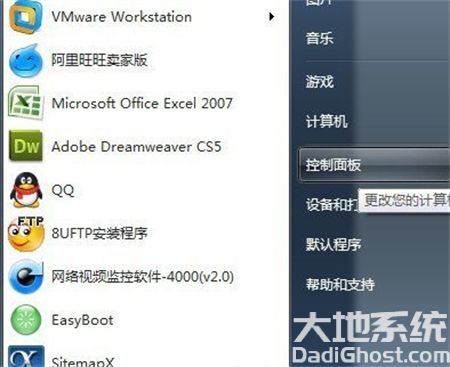1 、点击开始菜单,选择右边“控制面板”,进入设置